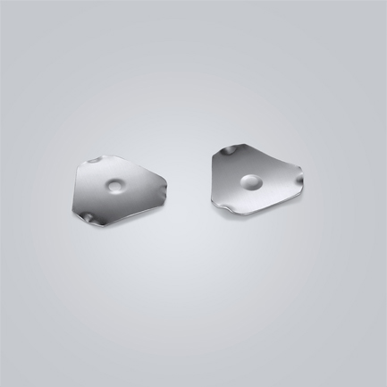 薄膜按键上的金属弹片位于PCB板上的导电部位(大部分位于线路板上的金手指上方),当受到按压时,弹片的中 心点下凹,接触到PCB上的线路,从而形成回路,电流通过,整个产品就得以正常工作。金属弹片(锅仔片),英 文metal dome,采用不锈钢制成,是开关上的一个重要组成部分,借助于金属弹片的的导通性,在操作者和产品 之间起到一个优质的开关的作用。