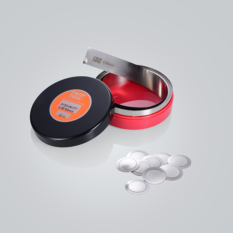 材料为原装进口精密不锈钢皮,经热处理精磨加工制成,具有精密度高,拉力度强,光洁度好,有韧性,不易折断的特点。